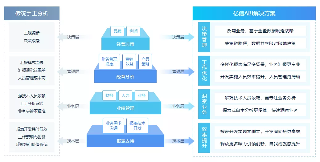 作為國內(nèi)最早深耕BI領(lǐng)域的軟件公司,億信華辰致力于為政企客戶提供一站式數(shù)據(jù)分析平臺,此次獲獎(jiǎng)的億信ABI滿足用戶從數(shù)據(jù)填報(bào)、ETL數(shù)據(jù)處理、數(shù)據(jù)建模到數(shù)據(jù)分析、數(shù)據(jù)可視化、移動(dòng)應(yīng)用等各個(gè)環(huán)節(jié)的功能需求,覆蓋數(shù)據(jù)分析完整流程,幫助用戶實(shí)現(xiàn)更深入的業(yè)務(wù)洞察力。