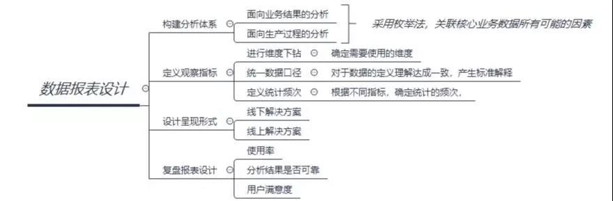 維度細化的過程中,可能會逐漸拆分為一級指標、二級指標……n級指標,但并非拆分中的每一個維度都要作為觀察指標。是否作為報表使用要結(jié)合公司業(yè)務(wù)特點并且和業(yè)務(wù)部門多次溝通協(xié)調(diào)達成共識。